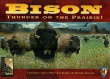 In Bison every player is representing a native American Indian tribe. Aim is to settle in an area rich of bison, fish and turkeys. The tribe need bison as food and clothes (leather), they need fish for food and the turkeys and their feathers for rituals and adornment. The players catch bison, fish and turkeys and keep the score as markers on their own overview board. The animal markers are used to survive, to explore new land and to buy canoes and tents at the market. The player who has the most animals wins the game.