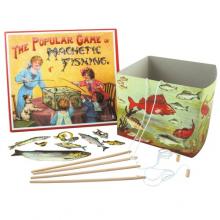 Perisphere and Trylon is very happy to present this Magnetic Fishing Game. A fantastic game from the late 1800’s. Use the magnetic fishing rods to catch the fish (and the occasional boot.) from the bowl. Beautifully illustrated box and pieces. Up to four players.
