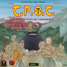 TPOC (The Politics of Cannibals) is a card and tile driven game for 3 - 5 players. You will play cards from your hand to the table before you to show your political "Platform." As the game progresses, tiles will be drawn from a bag to indicate how certain members of the tribe feel on one of 6 different issues such as (Religion, Farming, Labor, Trade, Cultural Identity, and Warfare.) Does a villager dare to challenge you? throw them into the POT! Each player must also be aware that at any time, one of the leaders of these six areas may decide to endorse the strongest candidate in their given area.