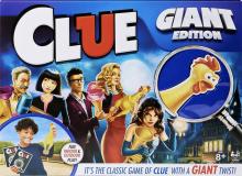 One mystery . . . 6 suspects. It’s the classic game of Clue with a giant twist! Can you figure out who’s responsible for hijinks in the mansion? Nine mysterious rooms are laid out in a circle, each holding dark secrets inside to discover. Spin the spinner and move to a room by standing beside the room’s large vinyl mat. Inside, you can pick up 2 Evidence Cards – but you can keep only one. Or you might spin and take possession of another big piece of evidence: one of 6 large, foam Tools. Your goal: Move from room to room, collecting matching colored Suspect, Room, and Tool cards, along with the matching foam Tool, and you’ll solve the case! Was it Professor Plum with the Rubber Mallet in the Library? Or Mr. Green with the Trumpet in the Billiard Room? No case is too small to solve with Clue: GIANT Edition!
