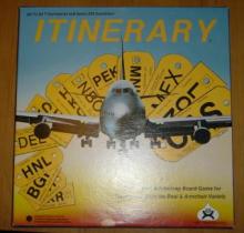 Itinerary is a game themed around worldwide air travel. The board is divided into six continents, with six special, low value spaces around the edge of the board which don't belong to any continent. Each plane can go on to two continents, plus the low value spaces. Players roll to move around the world, and must land by exact count, but the nature of the board often makes it possible to reach a desired space with multiple different rolls. To win, players must be the first to collect the required number of points in destinations.