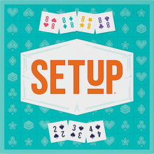 SETUP is a game of strategic tile placement, making sets of numbers of matching suits. You can't always plan in advance though as the tiles stack, so a sequence you had in mind may disappear when your opponents take their turn.